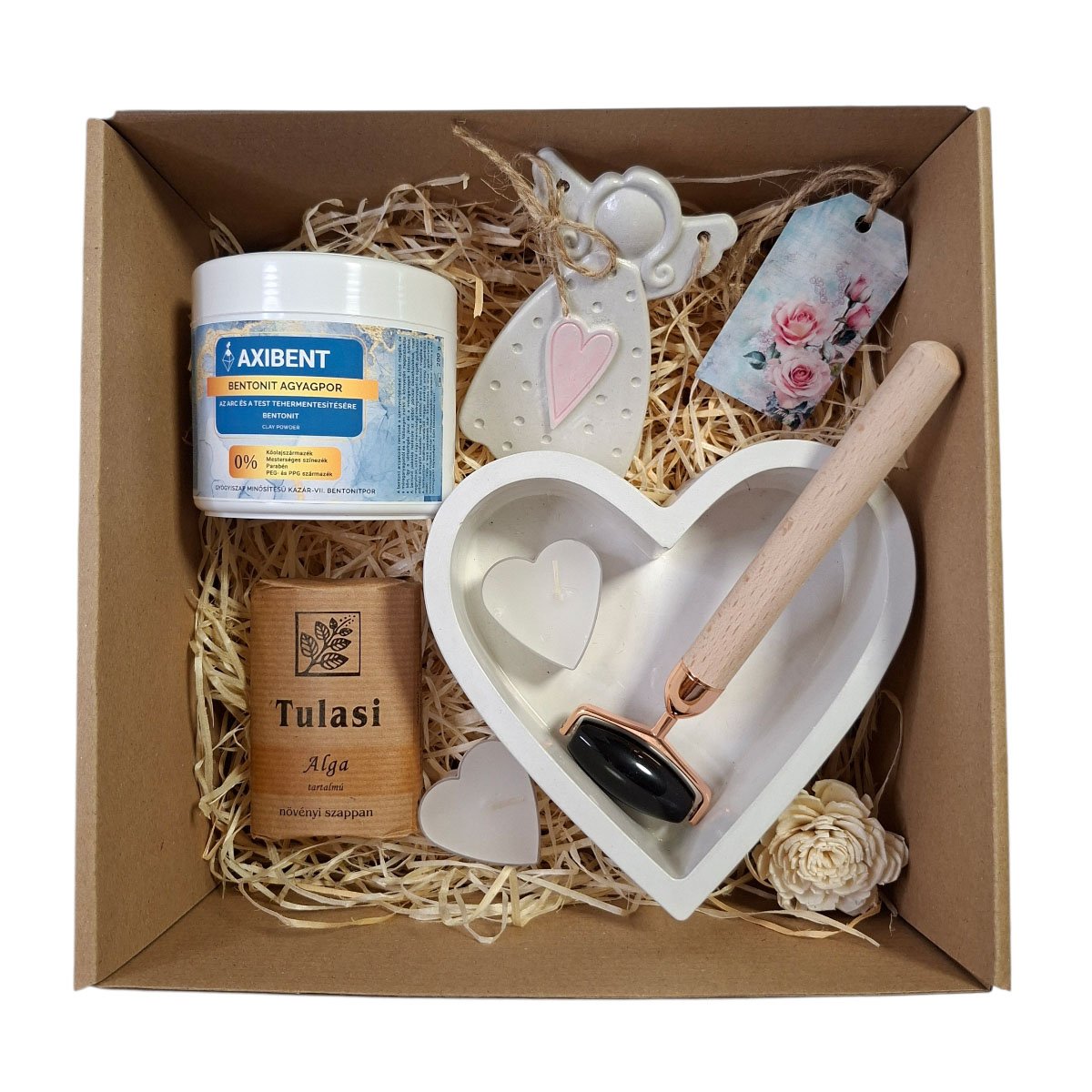 Fedezze fel a természetes arcápolás erejét az Alga és Ásvány kényeztető ajándékboxszal , amely tökéletes választás, ha egy különleges, kézműves ajándékkal lepné meg szeretteit vagy önmagát. Ez a válogatás a tengeri algák tisztító erejét és a természetes ásványok gyógyító hatását ötvözi. A Tulasi alga tartalmú növényi szappan és az Axibent bentonit agyagpor mélyen tisztítja a pórusokat, míg a Croll & Denecke fekete obszidián arcmasszírozó roller segít a bőr megújításában és a stressz oldásában. A kézzel készült, nagyméretű kerámia jellegű szív tároló és az angyalka figura egyedivé és emlékezetessé teszi ezt a Léleksimogató ajándékcsomagot. Teremtse meg a saját Kisszünet énidejét ezzel a prémium szettel!