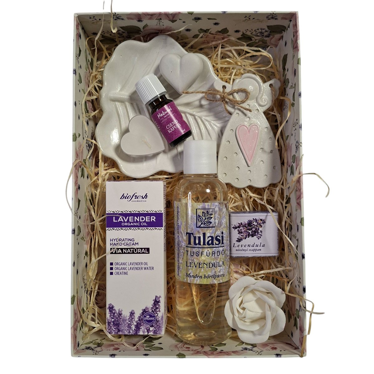 Tapasztalja meg a valódi kényeztetést a Levendula Luxus ajándékboxszal, amely az Édesálom pihentető erejét hozza el otthonába. Ez a összeállítás a Léleksimogató kategória egyik legigényesebb darabja, melyet a belső béke és a harmonikus Kisszünet megteremtésére alkottunk meg. A csomagban található Biofresh organikus levendulaolajos kézkrém és a Tulasi levendulás tusfürdő a legmagasabb szintű bőrápolást biztosítja. A relaxációt a Naturol „Csend Kapuja” illóolaj és az egyedi, kézzel készült kerámia jellegű kiegészítők teszik teljessé. Elegáns mágneses díszdoboza és kézműves tartalma miatt céges ajándéknak is kiváló választás.