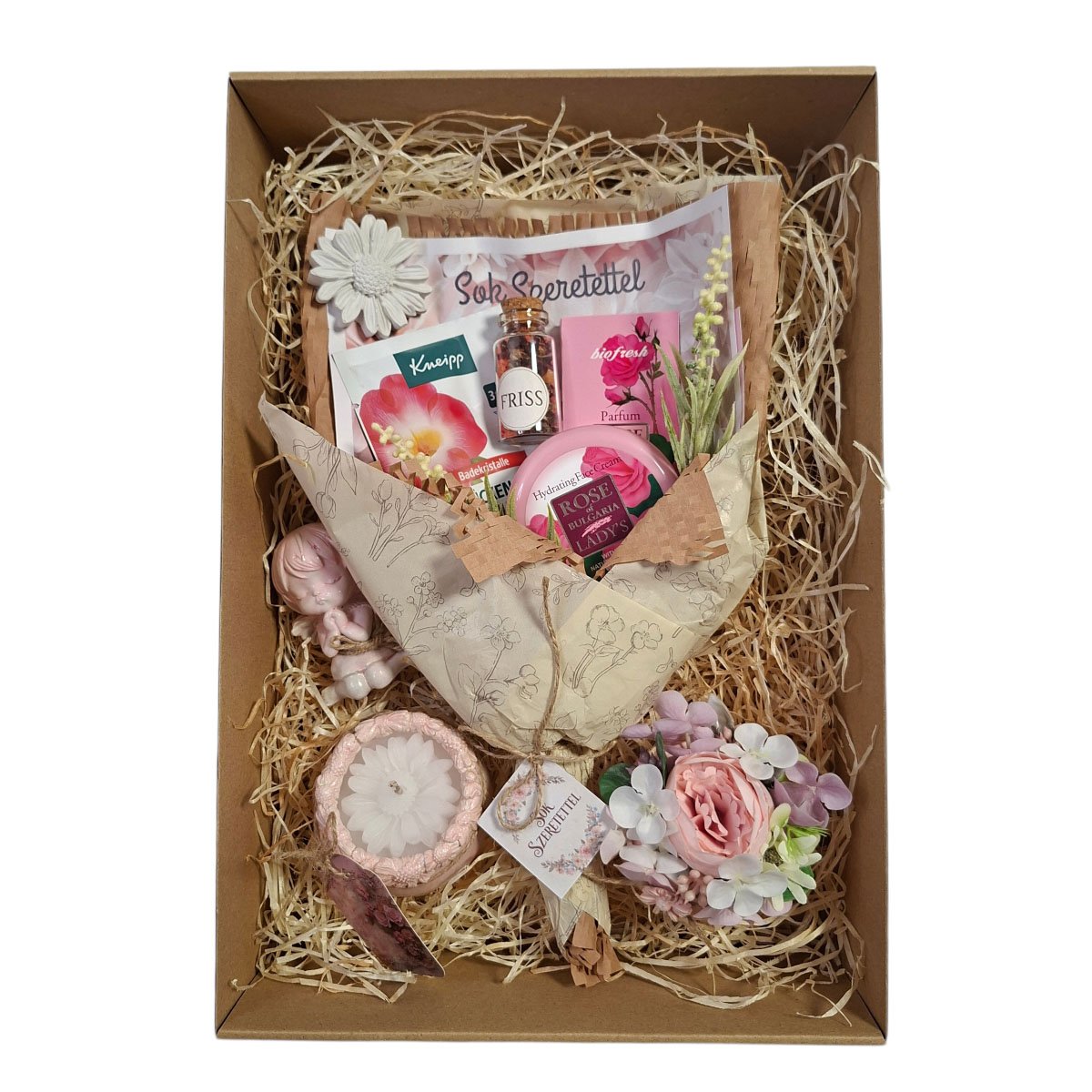 A csomag esztétikus, ajándékozásra kész megjelenésével ideális választás születésnapra, névnapra, Anyák napjára vagy bármilyen alkalomra. Meglepetést is találsz a boxban.