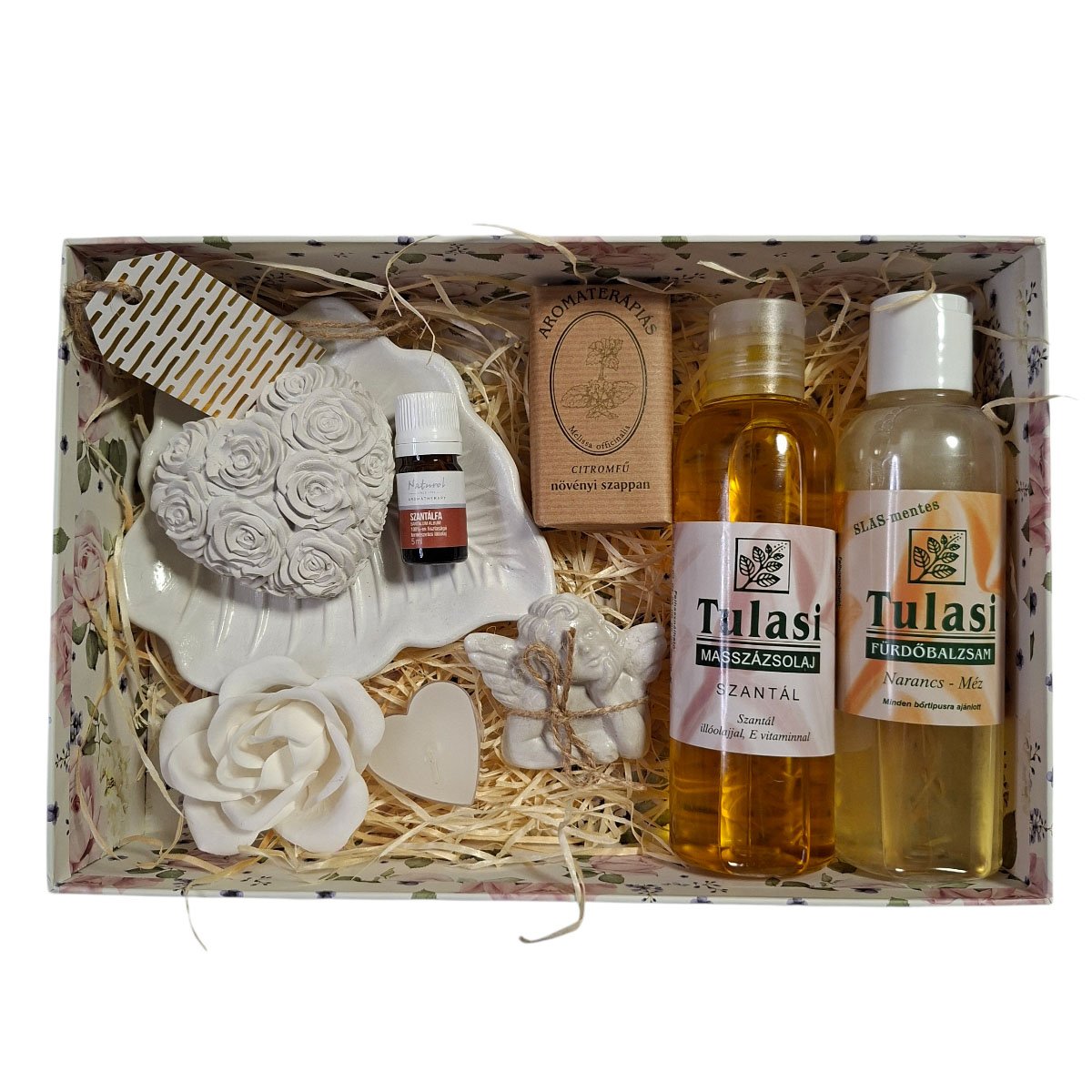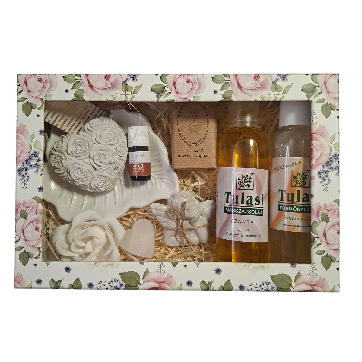 Fedezze fel a belső egyensúlyt a Szantálfa Harmónia ajándékboxszal, amely a Frissfény kategória egyik legmelegebb, legnyugtatóbb összeállítása. Ez a válogatás tökéletes választás a Közöspillanatok megéléséhez, hiszen a szantálfa misztikus illata és a narancs–méz édessége mindkét fél számára érzéki kényeztetést nyújt. A csomagban található Tulasi szantálfa masszázsolaj és narancs–méz fürdőbalzsam garantálja a test és a lélek felfrissülését egy megérdemelt Kisszünet alatt. A kézzel készült kerámia jellegű kiegészítők és a tiszta szantálfa illóolaj segítenek megteremteni a béke szigetét bármely otthonban. Elegáns, mágneses záródású doboza miatt reprezentatív céges ajándéknak is kiváló.