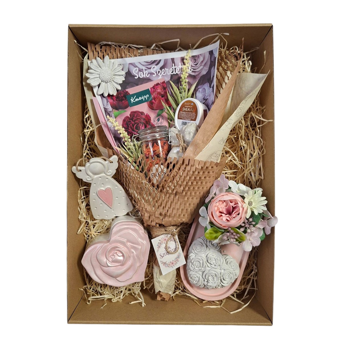 A Szívderítő Harmónia Wellness Ajándékbox egy romantikus, nőies hangulatú ajándékcsomag, amely a pihentetői otthoni wellness élményt és az esztétikus megjelenést ötvözi. Ideális választás születésnapra, névnapra, Anyák napjára, Valentin-napra, évfordulóra, karácsonyra vagy bármilyen alkalomra, amikor egy különleges, szeretetteljes és igényes ajándékkal szeretnél meglepni valakit.